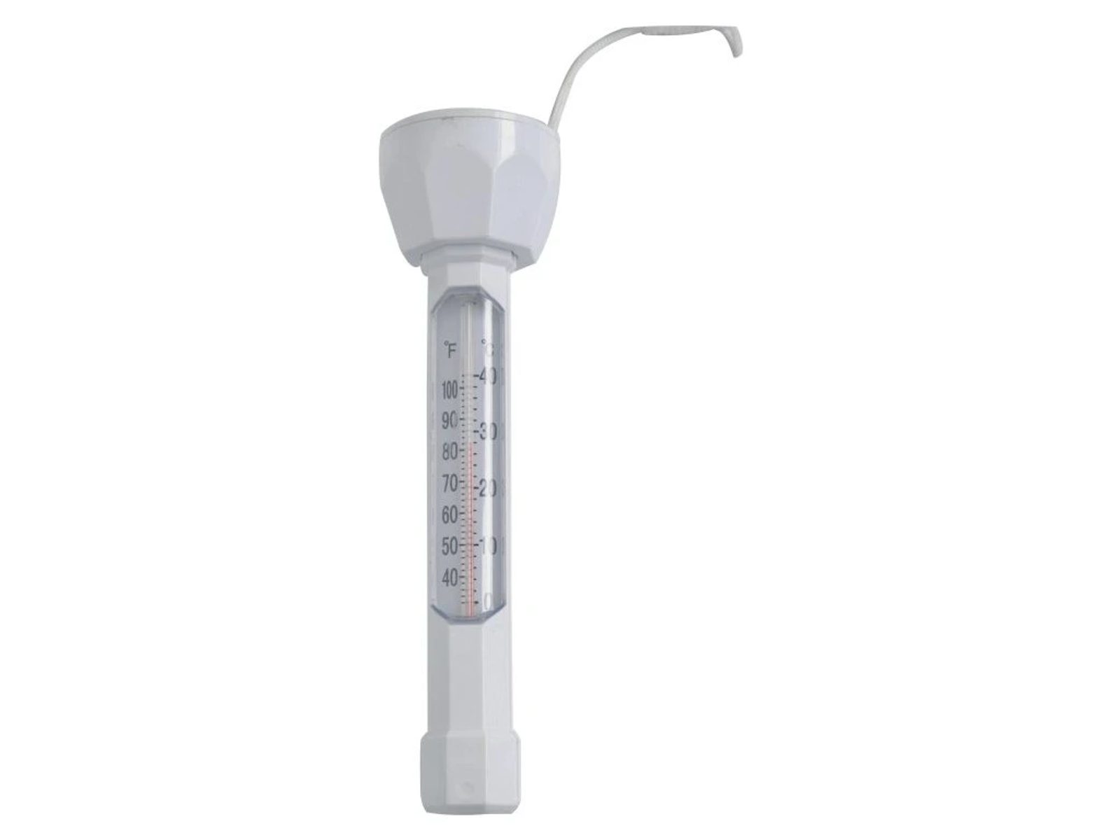 Plovoucí teploměr, který měří teplotu vody v bazénu. Má provázek, díky kterému je možné ho přivázat např. ke schůdkům. Teploměr měří teplotu v rozmezí 0 - 40°C.