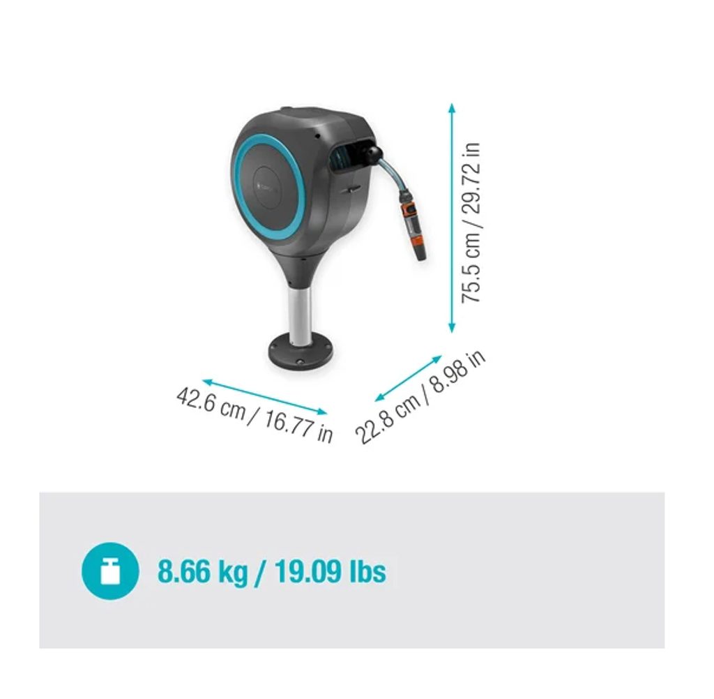 Box je navržen s kompaktním designem a obsahuje integrovanou 20 metrovou zahradní hadici, která je ideální pro použití na terasách nebo ve středně velkých zahradách.