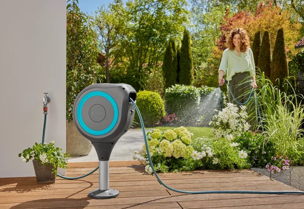 Terasový box na hadici GARDENA RollUp M je praktickým a spolehlivým řešením pro zavlažování středně velkých zahrad a teras.