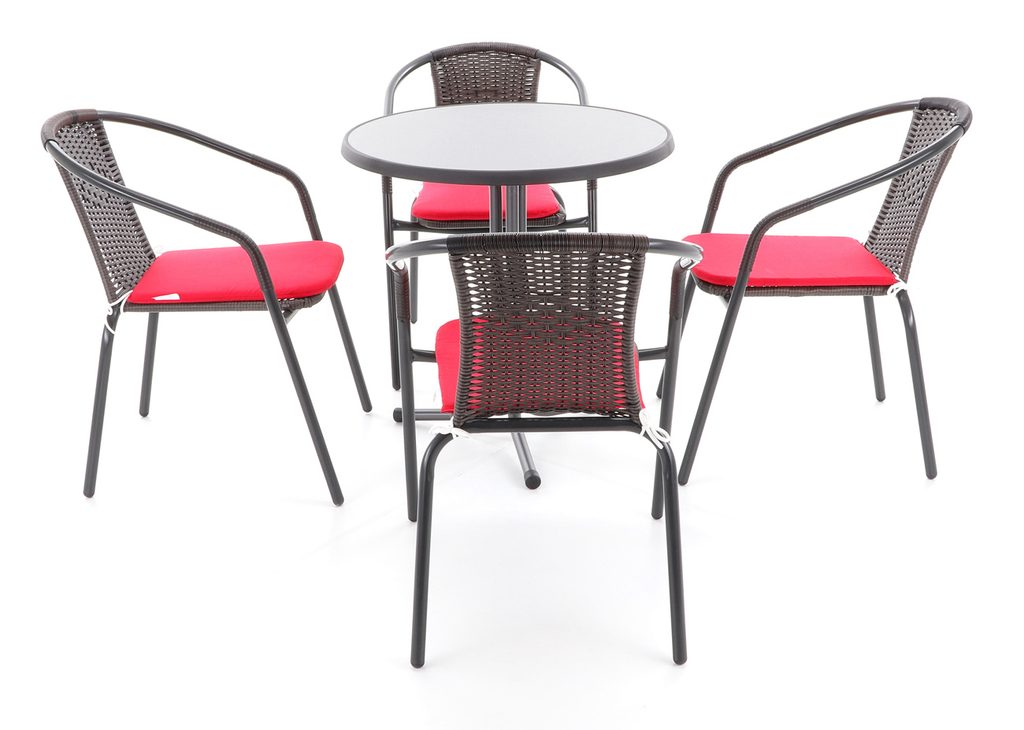 Terasová sestava KARO 4 se skládá z pohodlných stohovatelných křesel. Materiál ocel se speciální NANO technologií povrchové úpravy pro venkovní použití. Výplet je umělého ratanu s UV filtrem.
