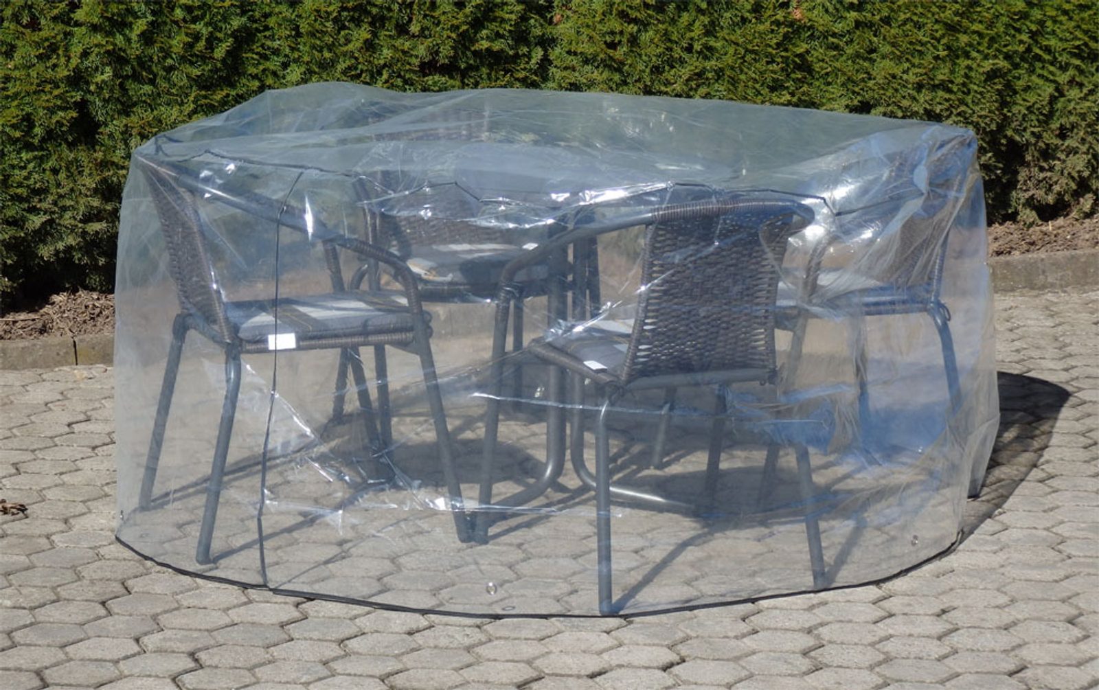 Součástí setu je i kvalitní plastový kryt nábytku a 4x pohodlný podsedák.