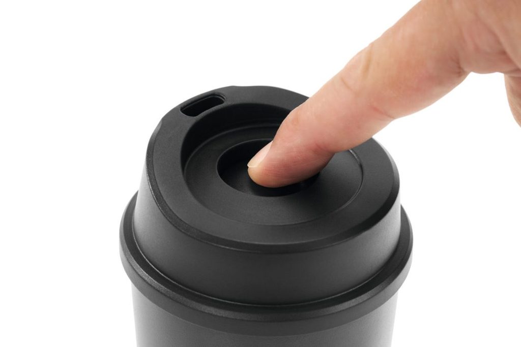 Víčko se šroubovacím uzávěrem zabraňuje vylití nápoje a otvor pro pití lze zavřít pomocí stisknutí. Temohrnek nelze mýt v myčce nádobí ani v mikrovlnné troubě.