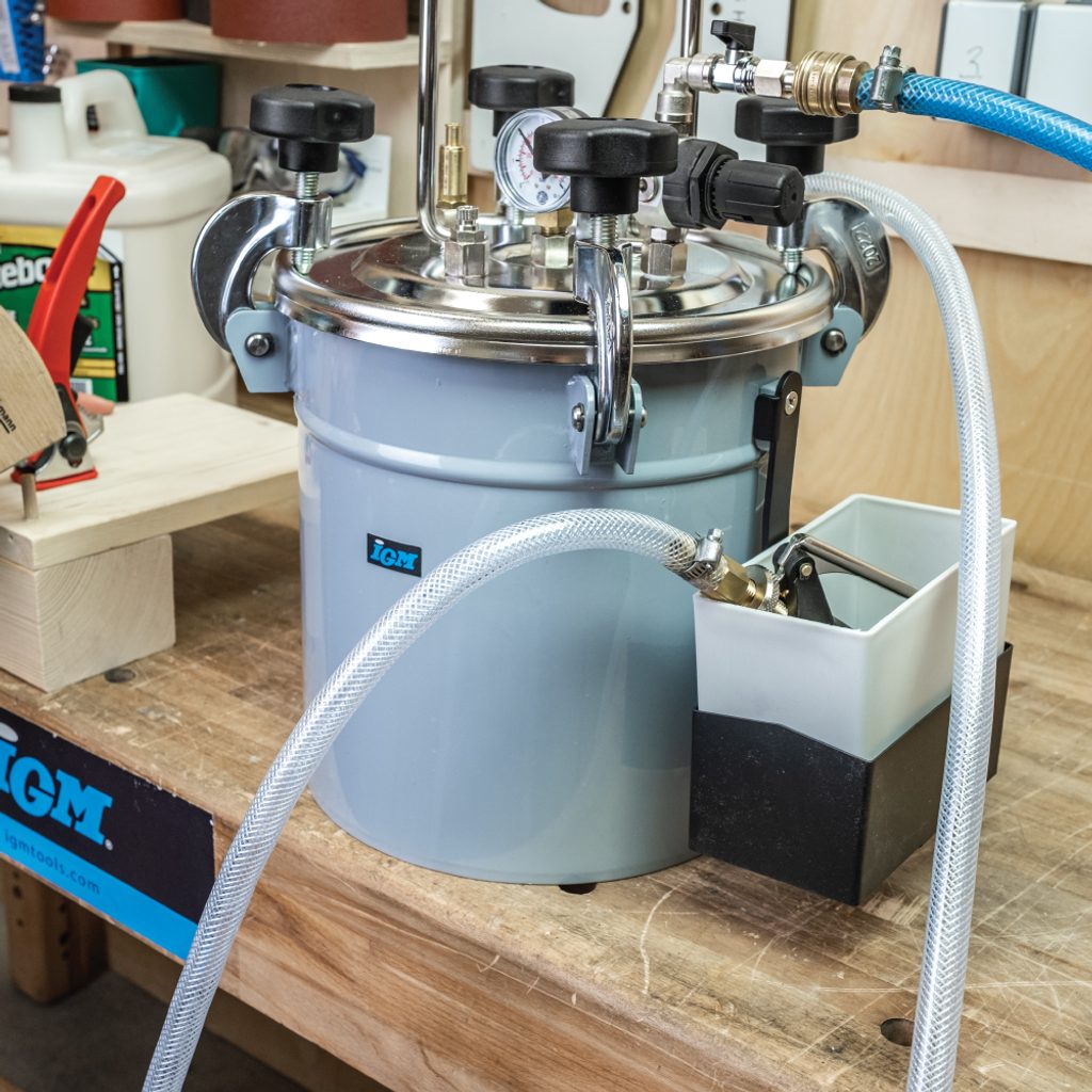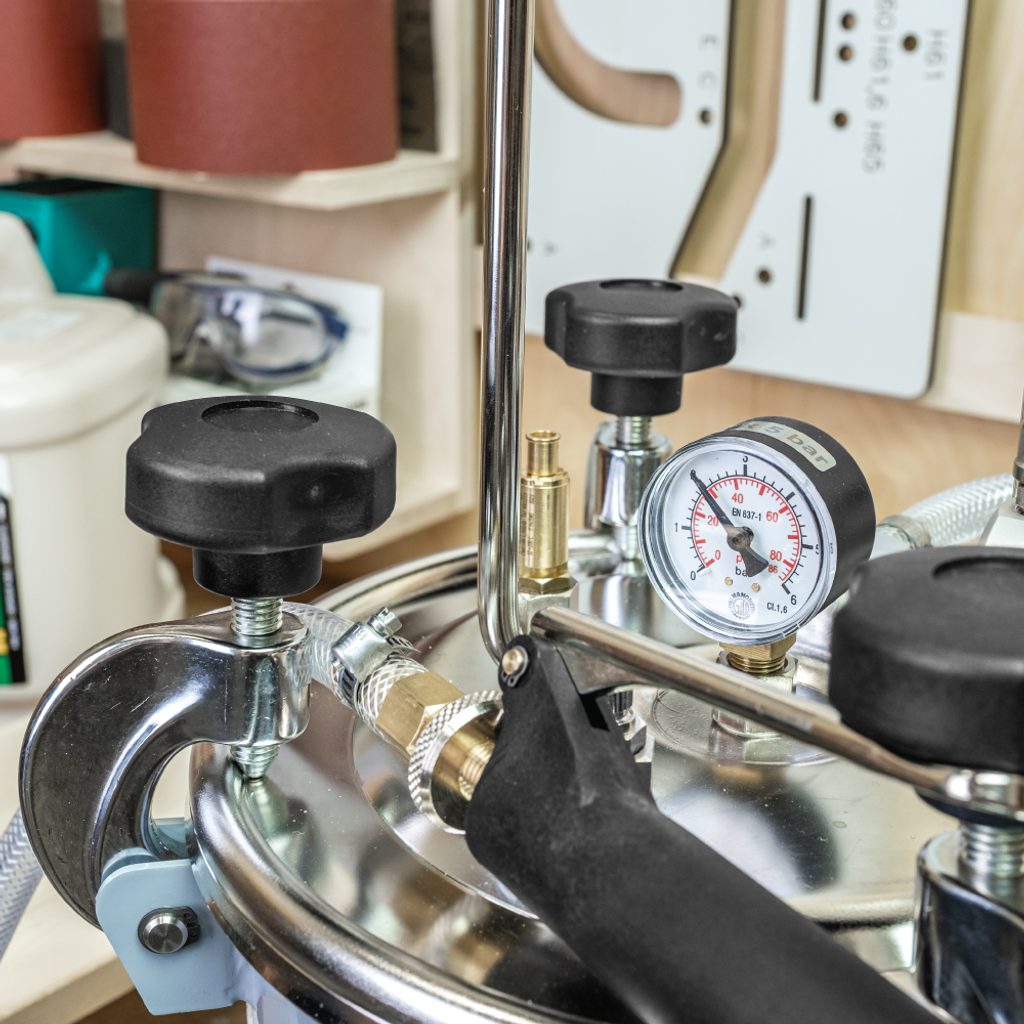 Kvalitní a bezproblémový tlakový dávkovač zkracuje pracovní čas při lepení nebo stříkání lepidel a barev ve srovnání s klasickou ruční aplikací. Dávkovač je určen pro disperzní vodou ředitelná lepidla (PVA) pro vysokopevnostní dřevěné spoje, se speciální dávkovací nebo stříkací pistolí lze navíc nanášet i lepidla a barvy na bázi rozpouštědel nebo vodou ředitelná.