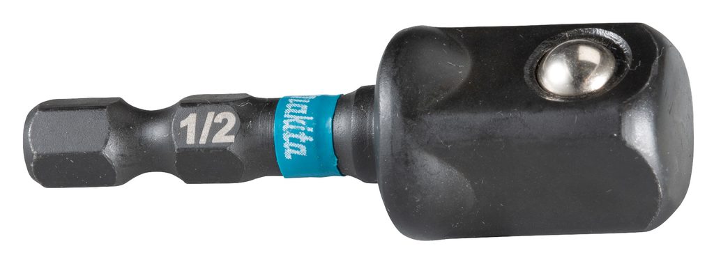 Zásuvkový adaptér s připojením 1/4" tvaru E k připojení zásuvky 1/2" ze série Makita Impact Black.
