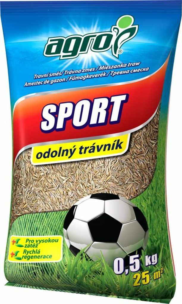 AGRO Travní směs SPORT je připravena z kvalitních travních odrůd, které při správné péči vytváří středně jemný, hustý trávník odolný vůči sešlapávání.