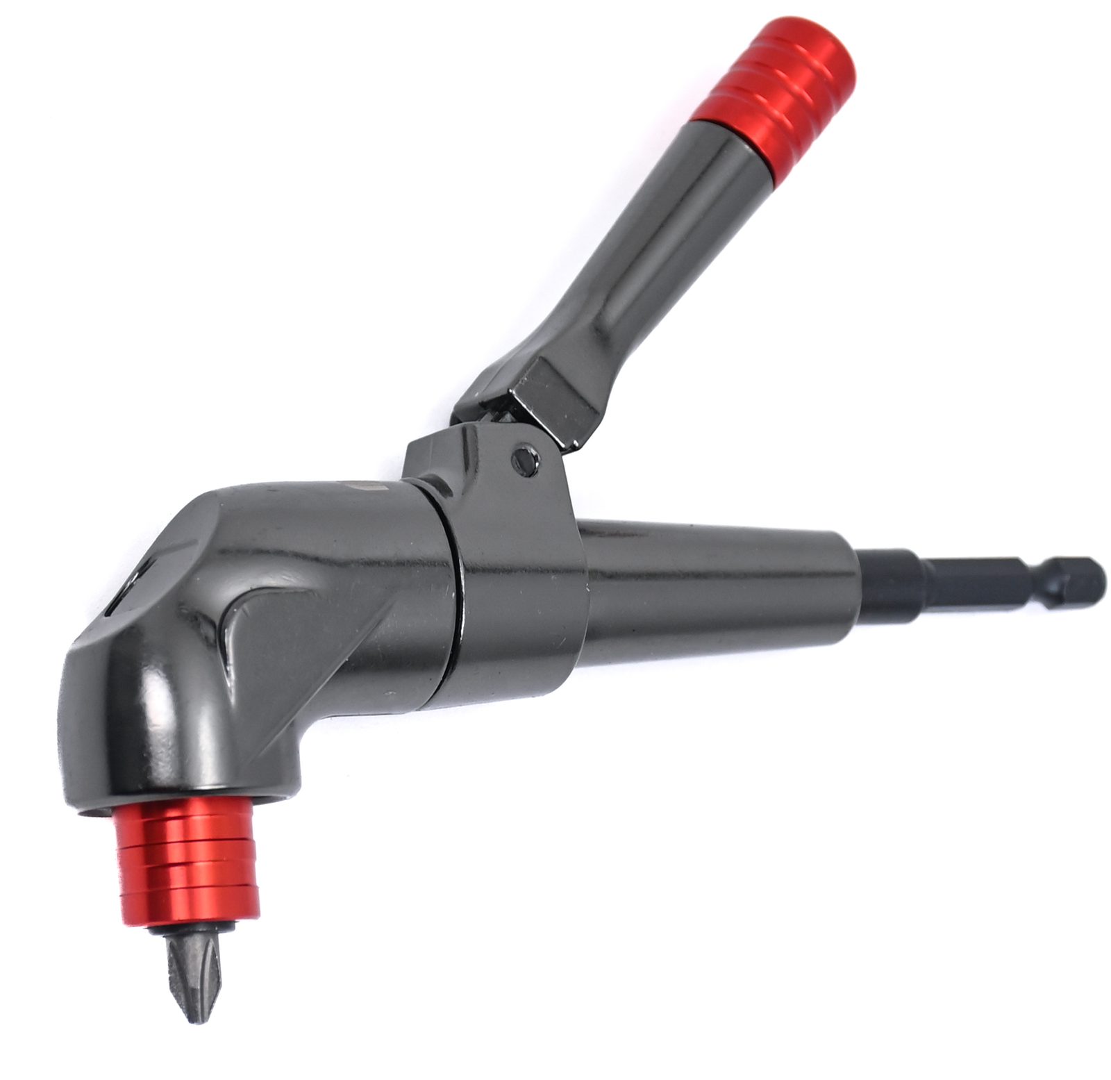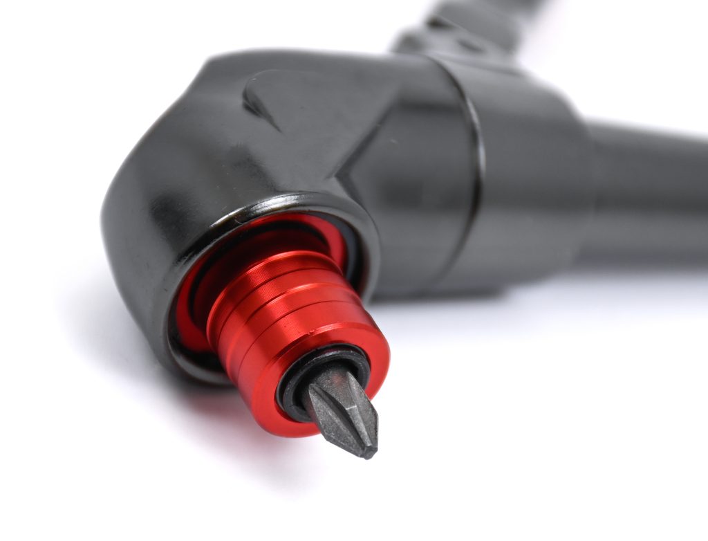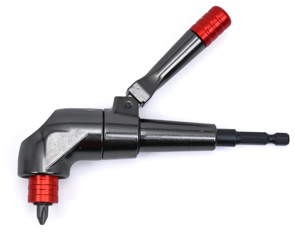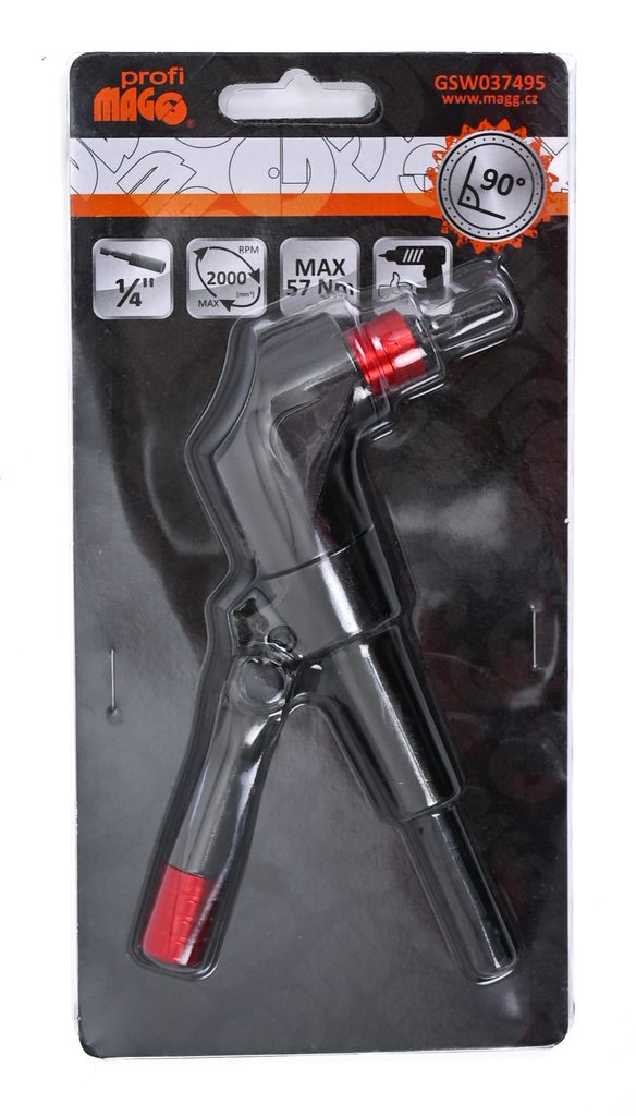 Úhlový nástavec k aku šroubováku Magg Profi Úhlový nástavec byl navržen pro těžkou práci ve stísněných prostorách nebo těžko přístupných místech. Tento 90° nástavec je vybaven stabilizátorem s aretačním kolíčkem pro možnost nastavení do 24 pozic. Do magnetického upínače s pojistkou lze umístit jakékoli 1/4 " šestihranné nástavce jako jsou šroubovací bity nebo vrtáky s šestihrannou stopkou. Odolné celokovové pouzdro a ocelová převodová kola.