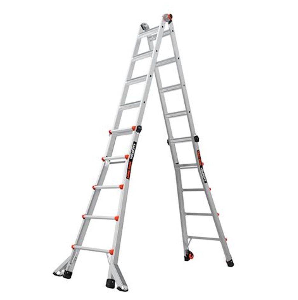 Unikátní systém 4v1, jednou z nejvýraznějších předností modelu Velocity je možnost vytvoření dvou samostatných A žebříků z jednoho základního. Po vysunutí stojen ze základního žebříku a jejich spojení pomocí kozlíkového držáku (art. č. 26999) získáte dva nezávislé A žebříky. Ty lze využít pro současnou práci více osob nebo v kombinaci s teleskopickou plošinou PLANKS jako pracovní lešení. Vysunuté stojny lze při dodržení zvýšené opatrnosti použít také jako samostatné opěrné žebříky.