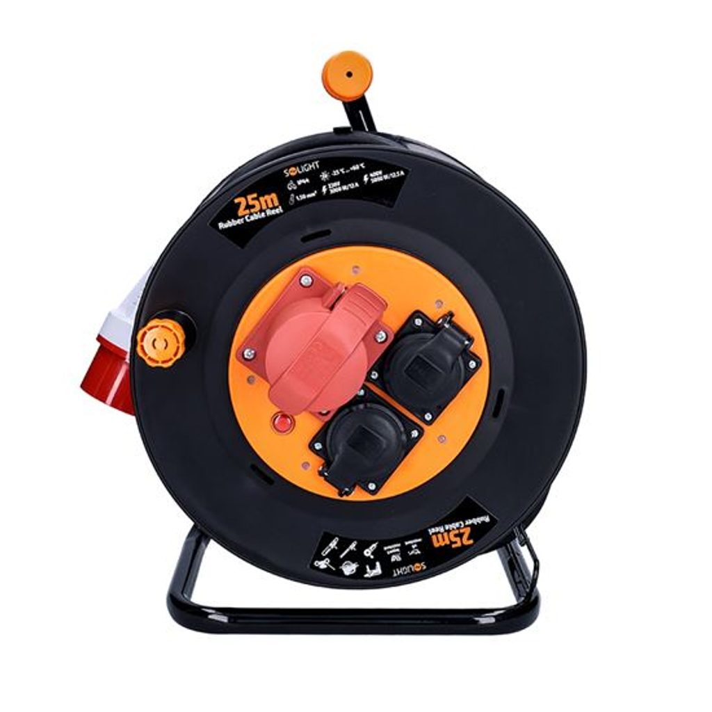 Venkovní prodlužovací kabel SOLIGHT PB40 je robustní přívod na navíjecím bubnu pro domácí i profesionální použití. Díky délce 25 m, kombinaci 1x zásuvky 400 V a 2x zásuvek 230 V a krytí IP44 je vhodný pro napájení strojů a nářadí na stavbě, v dílně i v provozu.