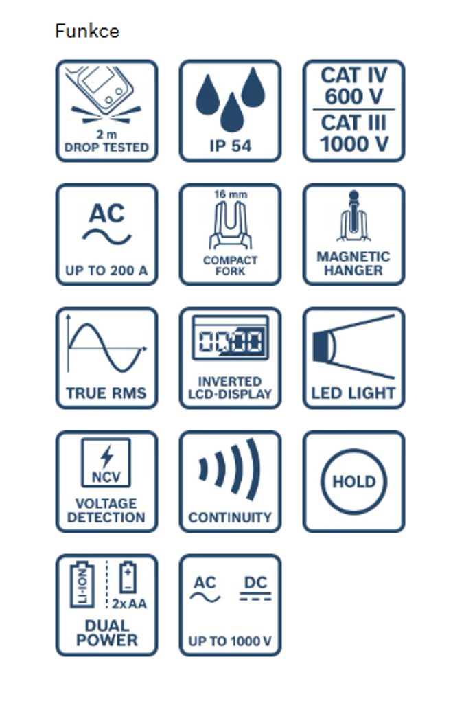 Robustní konstrukce s krytím IP 54 zajišťuje vysokou odolnost vůči prachu, stříkající vodě i nárazům, což oceníte v náročných podmínkách staveniště. Otevřená konstrukce čelistí umožňuje měřit proud až do 200 A AC bez přerušení obvodu, takže práce běží rychleji a efektivněji. Ergonomický tvar zaručuje pohodlný úchop i při delším používání.