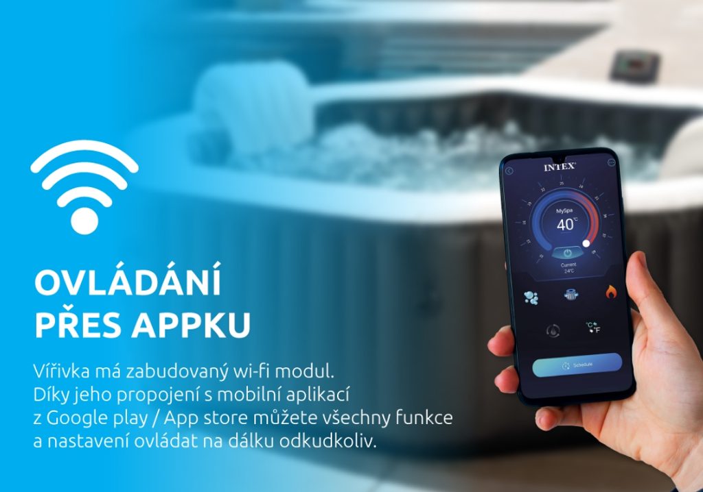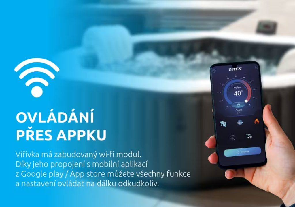Vířivka Intex Pure Spa Jet & Bubble Deluxe HWS 6 je moderní a prostorná vířivka, která přináší relaxaci až pro šest osob. Díky nové funkci Wi-Fi ji lze snadno spárovat s mobilním telefonem a ovládat na dálku pomocí aplikace. To vám umožní připravit si relaxační lázeň ještě před vaším příchodem a užít si maximální pohodlí.