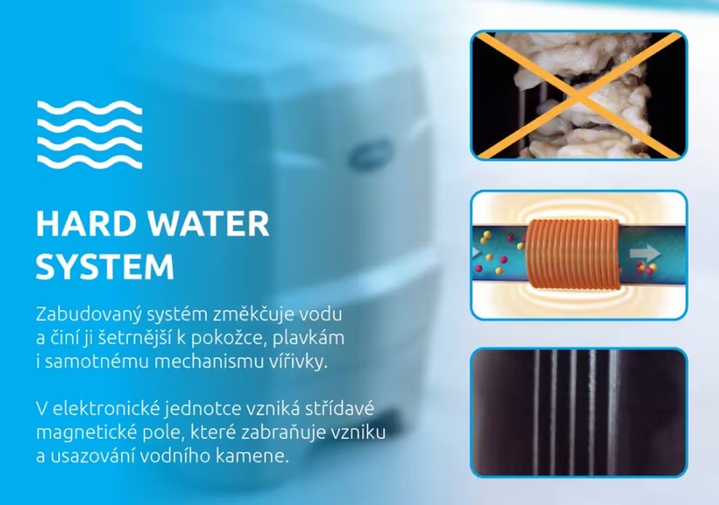 Vířivka je vybavena unikátním systémem HWT (Hard Water Treatment System), který změkčuje vodu a činí ji šetrnější k pokožce. Elektronická jednotka vytváří střídavé magnetické pole, které zabraňuje vzniku vodního kamene v hadicích a prodlužuje tak životnost vířivky.