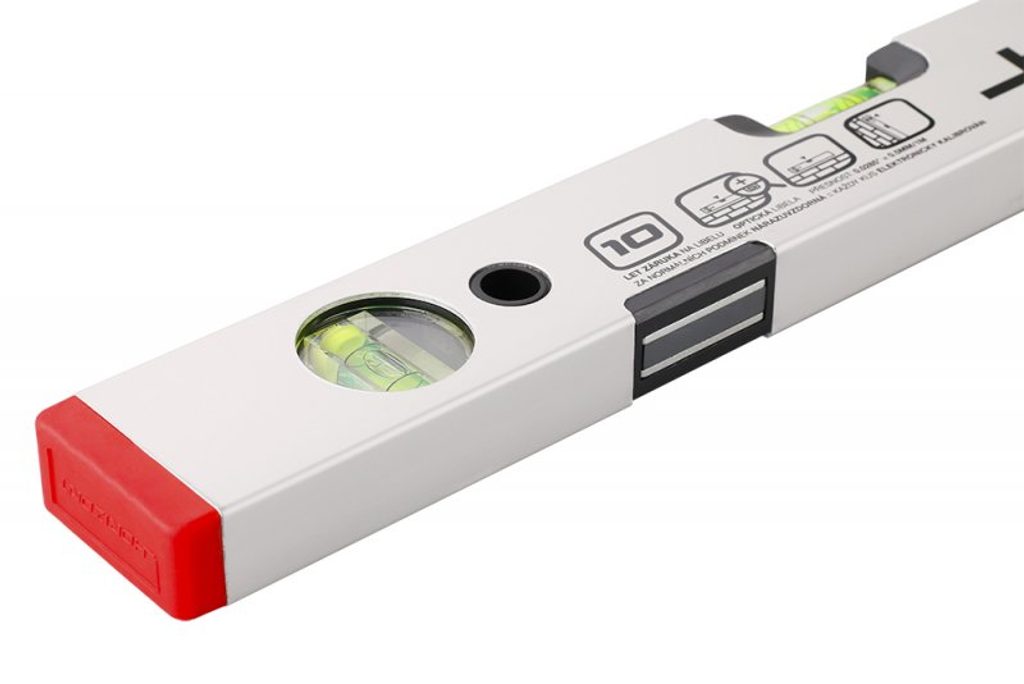 Díky výraznější fluorescenční kapalině je bublina výborně viditelná na slunci i v horších světelných podmínkách. Vodováha má dvě libely a nabízí přesnost 0,5 mm/m (0,0285°). Robustní ALU profil s tloušťkou stěny 1,5 mm doplňuje elexovaný otěruvzdorný povrch, který prodlužuje životnost při každodenním používání.