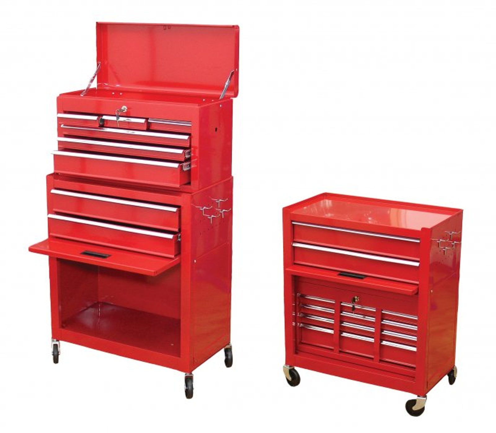 Montážní dílenský vozík na nářadí, vysoký, skládající se ze dvou částí, horní skříňku lze uložit do spodního vozíku.