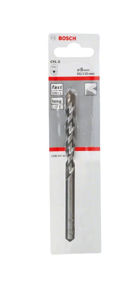 Jeho vysoká odolnost vůči opotřebení je zajištěna použitím trvanlivé karbidové směsi, kterou vyvinula a vyrábí společnost Bosch. Vrták je proveden v účinném 2žlábkovém tvaru U, což zaručuje efektivní odvádění odvrtané moučky, snižuje tření a prodlužuje životnost nástroje. Je ideální pro dlouhodobé výkony při vrtání otvorů potřebných pro upevnění v abrazivních materiálech, jako je beton či přírodní kámen.