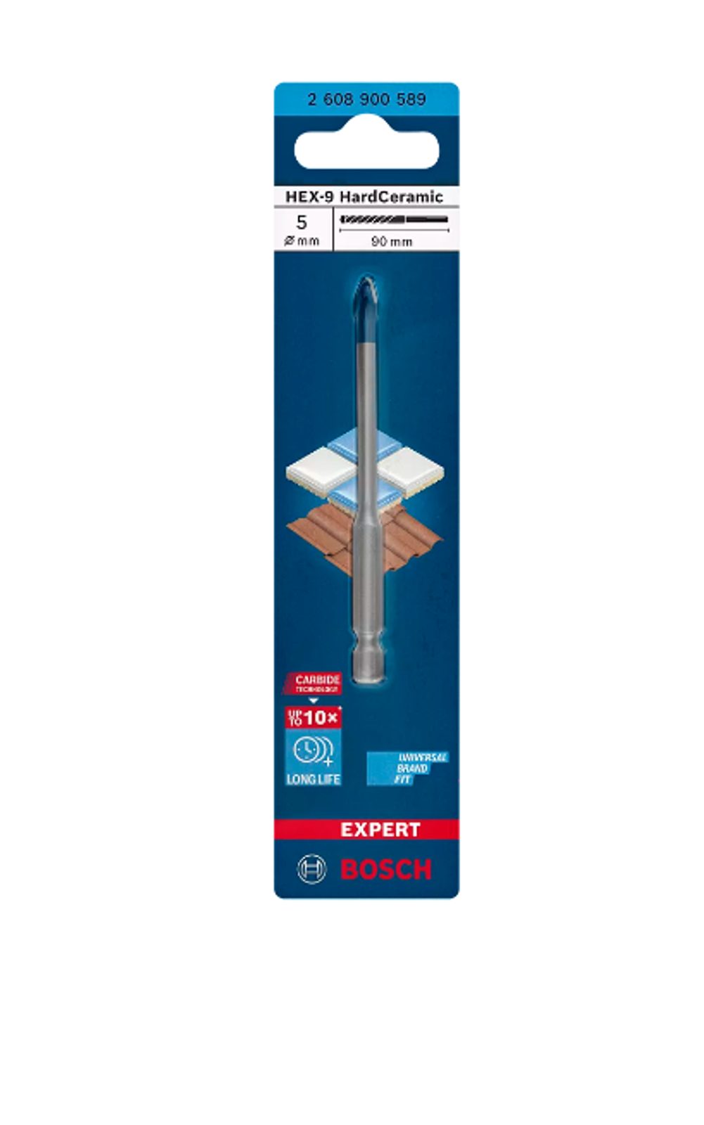 Vrták Bosch výkonnostní třídy EXPERT je navržen pro výjimečnou odolnost a výkon. Carbid Technology Bosch zajišťuje, že hrot vrtáku je extrémně odolný. Tento vrták vydrží až 10× déle než standardní vrták Bosch CYL-9 Soft Ceramic, což ho činí ideálním pro vrtání do tvrdých materiálů.