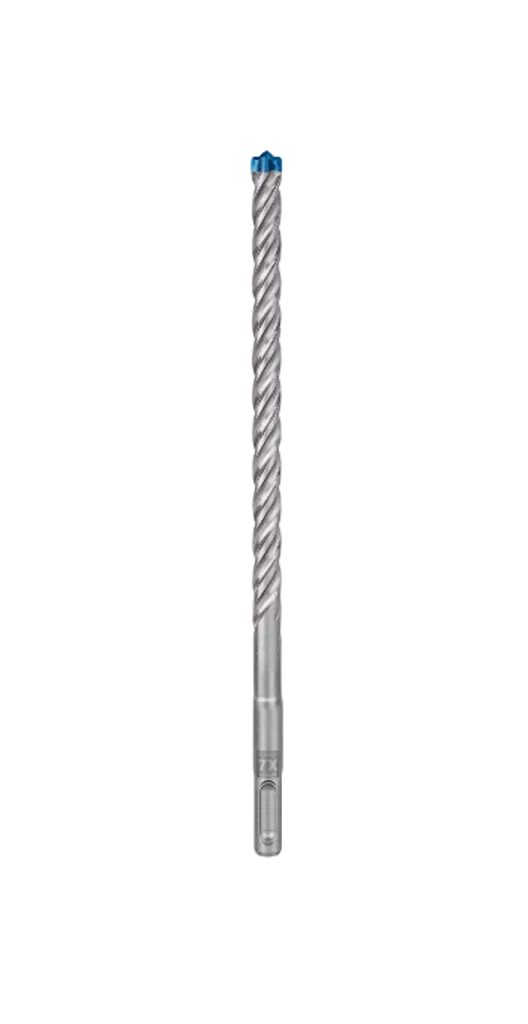Vrták do železobetonu Bosch SDS plus-7X výkonnostní třídy EXPERT je navržen tak, aby odolal těžkým podmínkám vrtání do železobetonu bez rizika poškození. Díky technologii Bosch Carbide Technology je hrot vrtáku mimořádně odolný. Je vybaven celokarbidovou hlavou se čtyřmi břity, které jsou vyrobeny z jediného kusu vysoce tvrdého kovu, což zajišťuje, že se vrták nezasekne v armatuře a umožňuje efektivní a plynulé vrtání.