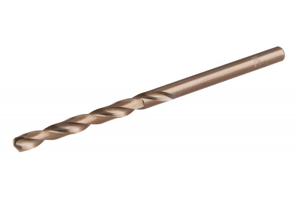 Vysoce kvalitní vybrušovaný vrták HSS-Co. 5% DIN 338 ve zlatohnědé povrchové úpravě. Úhel ostření 135°. Vrták je určen k vrtání legované i nelegované oceli, železa, litiny nebo barevných kovů až do pevnosti 1400 MPa. Dodává se po 1 kuse.