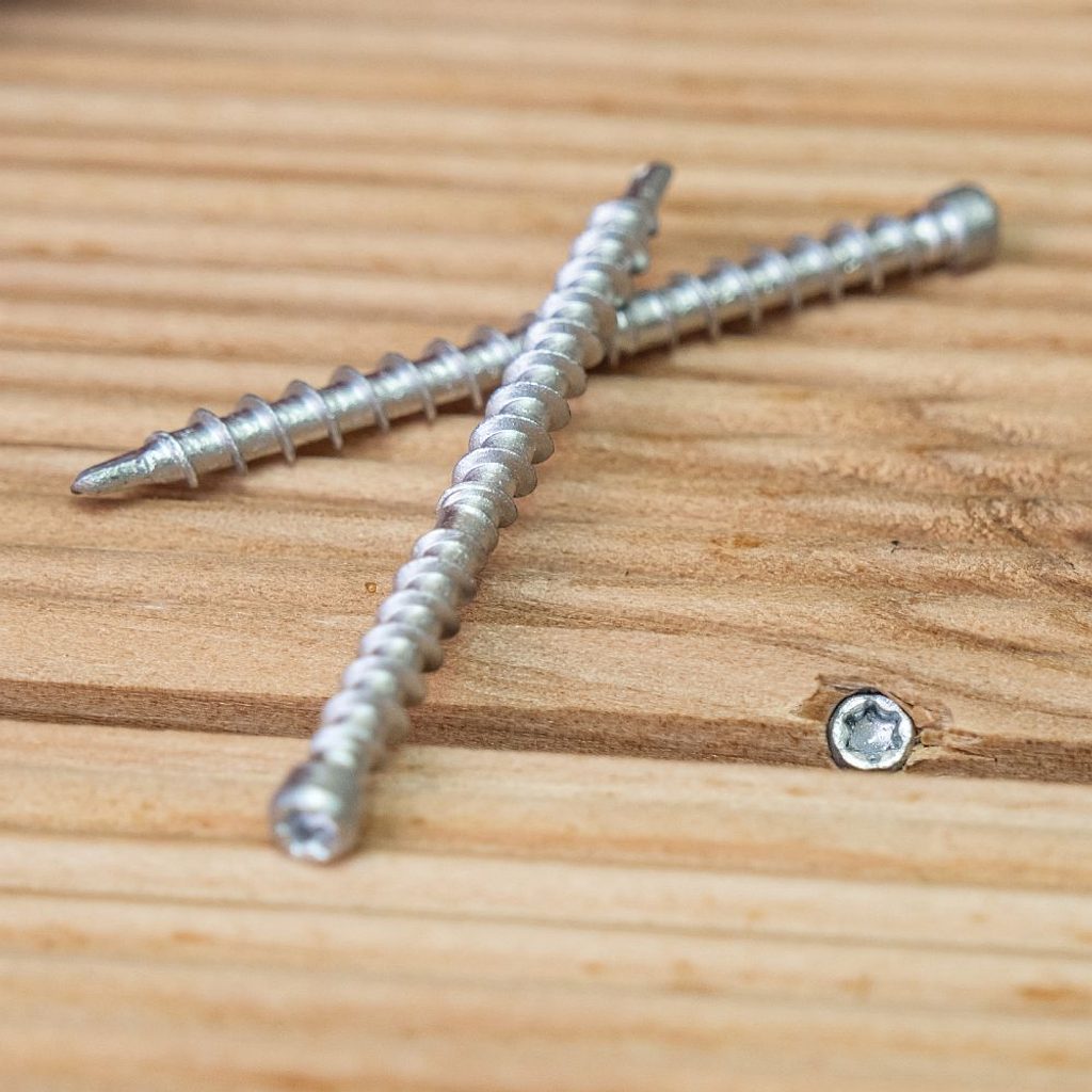 Díky zmenšené, zapuštěné Torx hlavě se vrut skryje do materiálu a na povrchu terasy neruší vzhled dřeva, ani nepřekáží při chůzi.