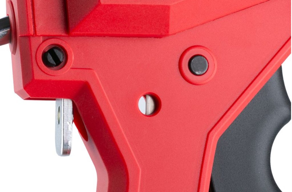 Pistole nabízí dvě varianty vytlačování, přepínač v dolní poloze automaticky zastaví tok tmelu nebo lepidla, což zaručuje čistou práci bez zbytečného plýtvání materiálem. Přepínač v horní poloze umožňuje souvislé tmelení nebo lepení bez přerušení. Ve spoušti je navíc integrované ostří, které slouží k pohodlnému sestřižení špičky kartuše.