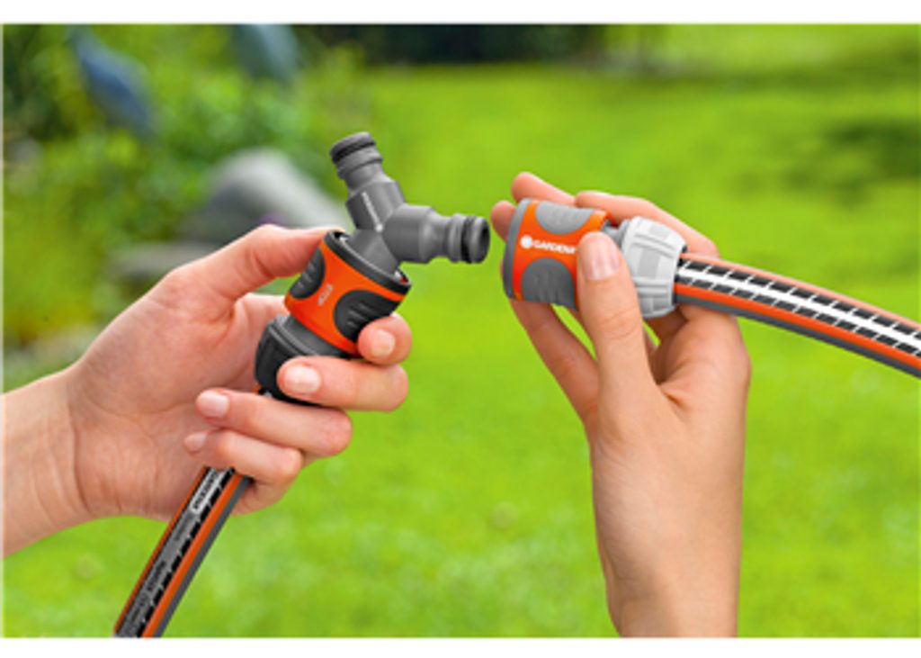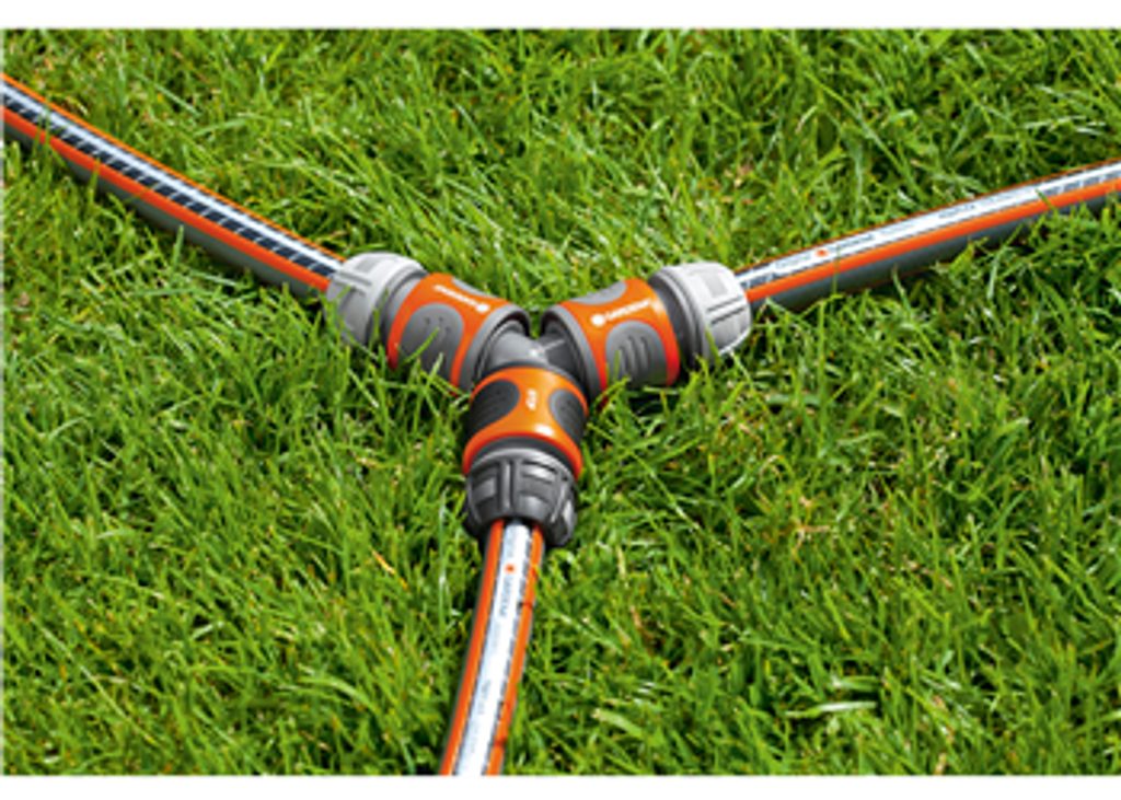 Díky tomu můžete simultánně pracovat, např. zavlažovat trávník a zároveň květinové záhonky. Spojka Y je vhodná pro hadice o průměru 19 mm (3/4") až 13 mm (1/2").