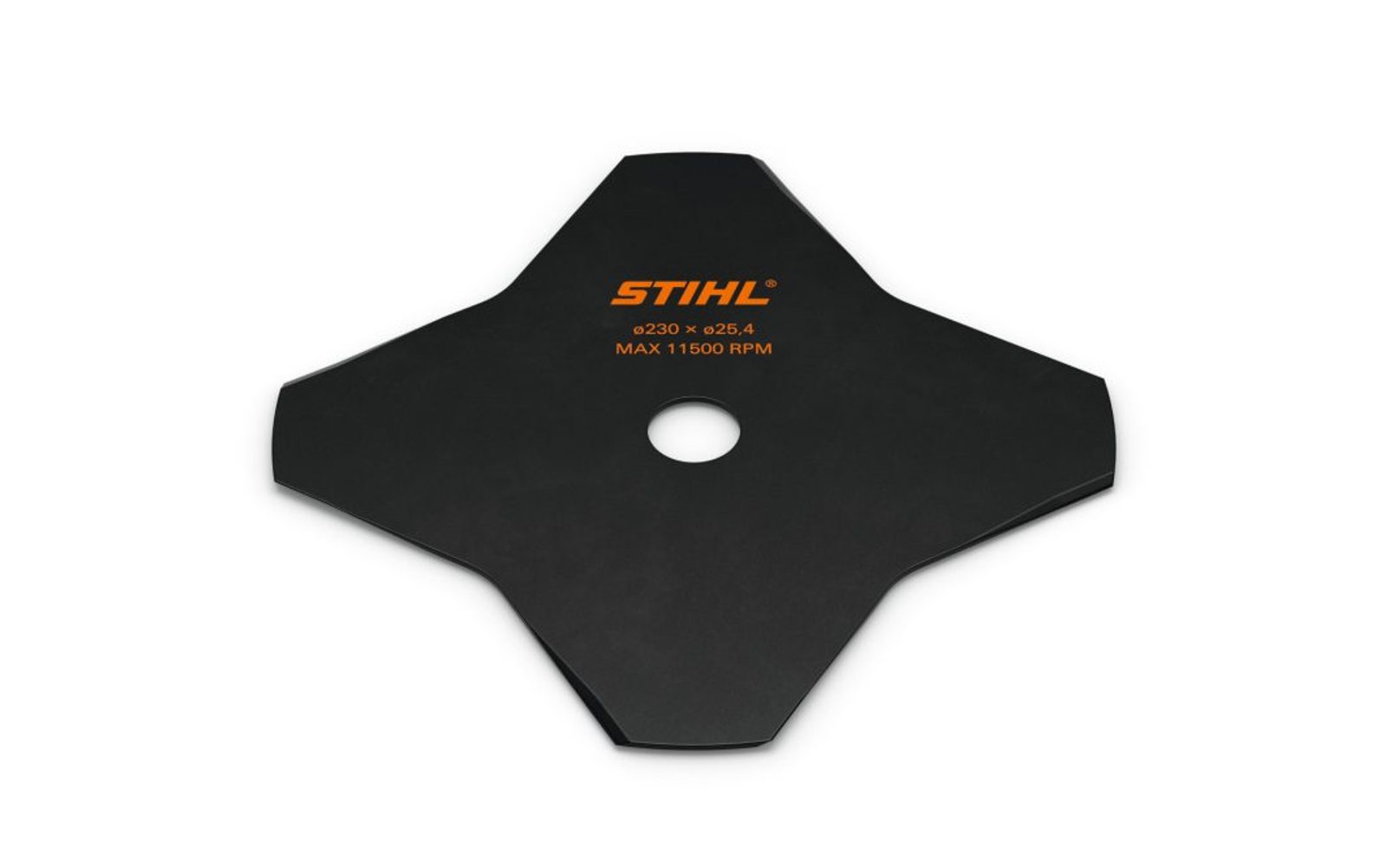 S řezacím nožem STIHL GrassCut s 4 noži můžete efektivně a rychle sekat a upravovat tvrdou trávu. Jeho robustní zpracování umožňuje použití tohoto řezacího nástroje s příslušným křovinořezem STIHL nebo křovinořezem STIHL v husté a suché trávě, stejně jako proti houževnatému plevelu.