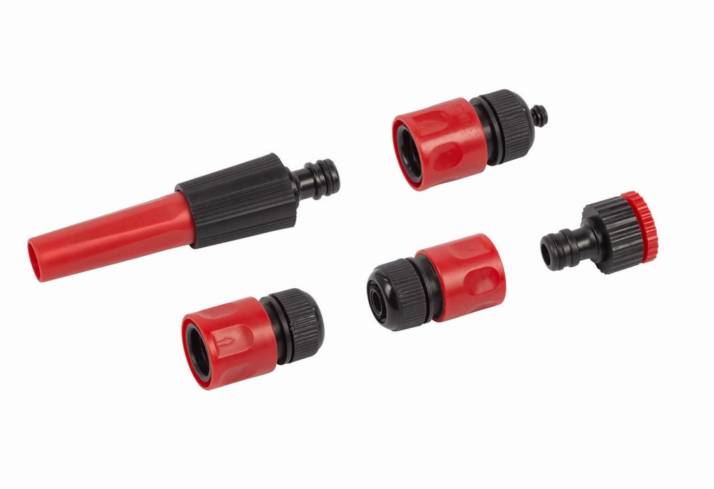 Tento naviják je dodáván s 15-ti metrovou zahradní hadicí o průměru 1/2", která bez problémů dosáhne do každého kouta středně velké zahrady. Součástí balení jsou univerzální připojovací kusy, s nimiž připojíte hadici téměř ke každému vodovodnímu kohoutku, a nastavitelná tryska, díky které snadno nastavíte proud vody podle aktuální potřeby.