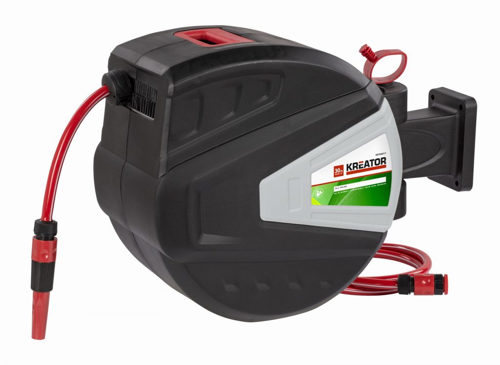Nástěnný box s hadicí Kreator KRTGR6717 lze snadno připevnit na zeď a připojit ke kohoutku, můžete tak zalévat jednoduše a pohodlně. Hadice tak bude vždy úhledně uložena a nebude vám neustále překážet.