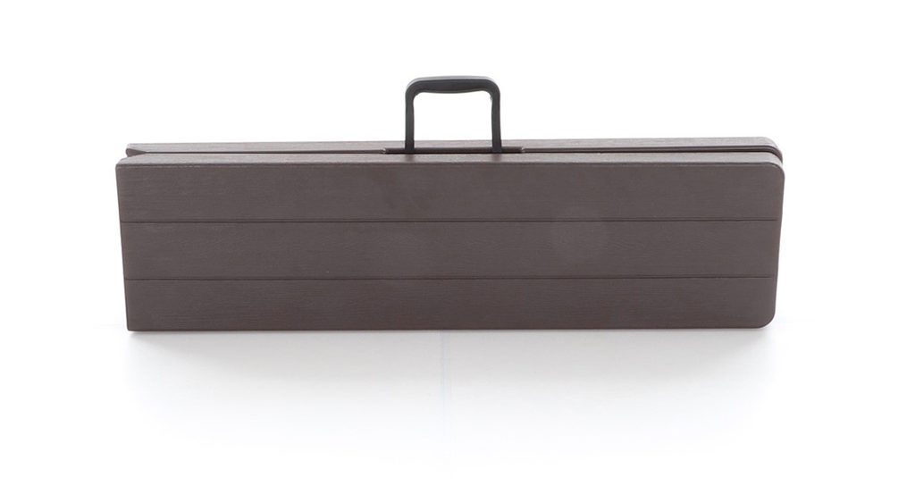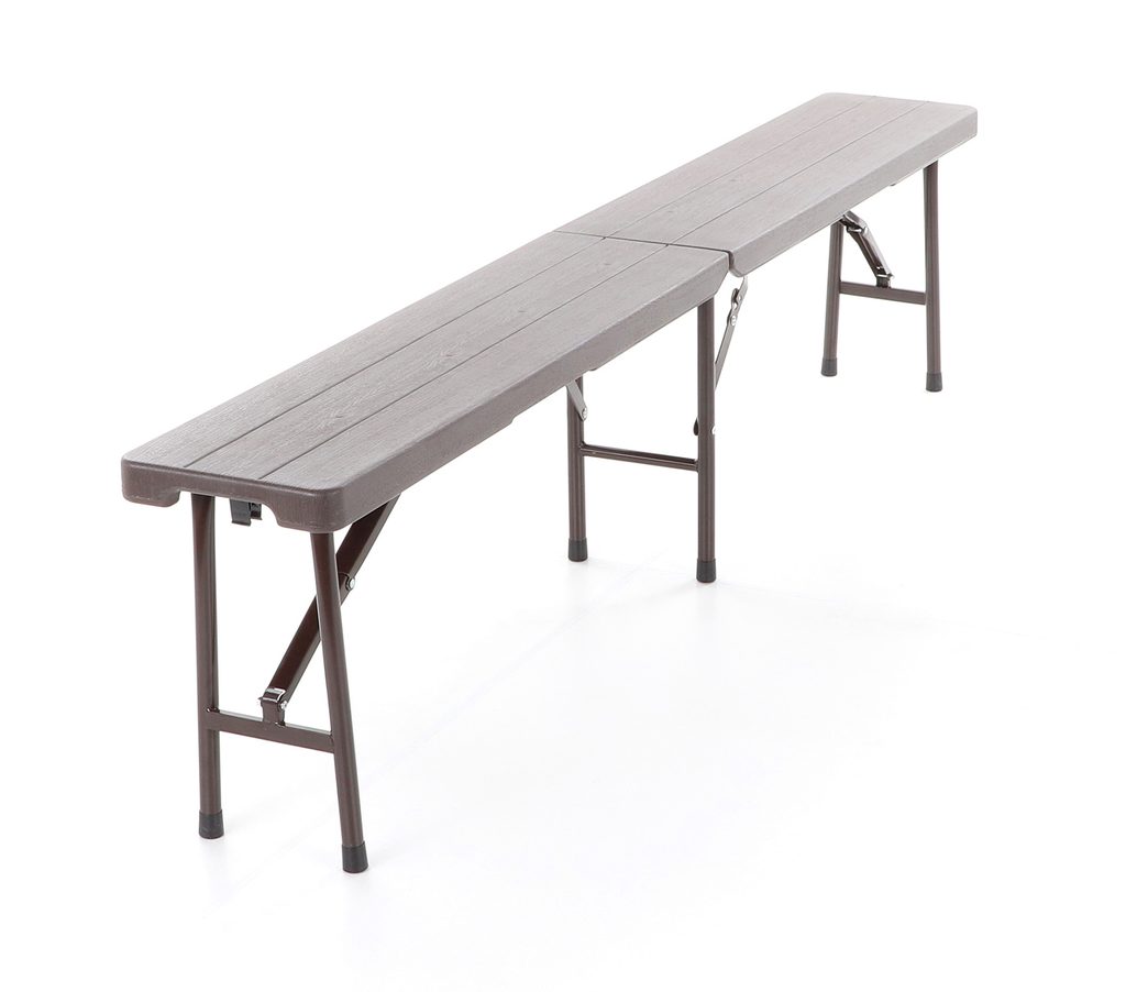 Skládací lavice je vyrobena z ocelových profilů povrchově dokončena komaxitovou barvou, čalounění je v imitaci masivního dřeva z lisovaného plastu s UV filtrem, určená do interiérů, exteriérů a pergolových prostor.