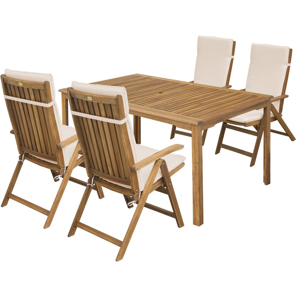 Stůl i křesla jsou vyrobeny z kvalitní tropické dřeviny akácie, která je známá svou tvrdostí a výjimečnou odolností vůči nepříznivým povětrnostním podmínkám. Díky tomu je tato sestava skvělou volbou pro venkovní použití a dlouhodobé užívání bez zbytečných starostí.