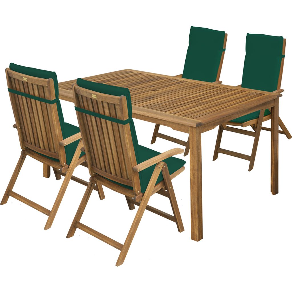 Součástí sestavy jsou také čtyři ergonomicky tvarovaná křesla s možností nastavení opěradla až v 5 různých polohách. Nastavení je snadné pomocí posunu loketních opěrek, takže si vždy pohodlí přizpůsobíte podle svých potřeb. Pro ještě větší komfort lze ke křeslům dokoupit pratelné potahy ve zelené a bílé barvě.