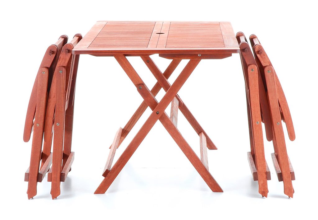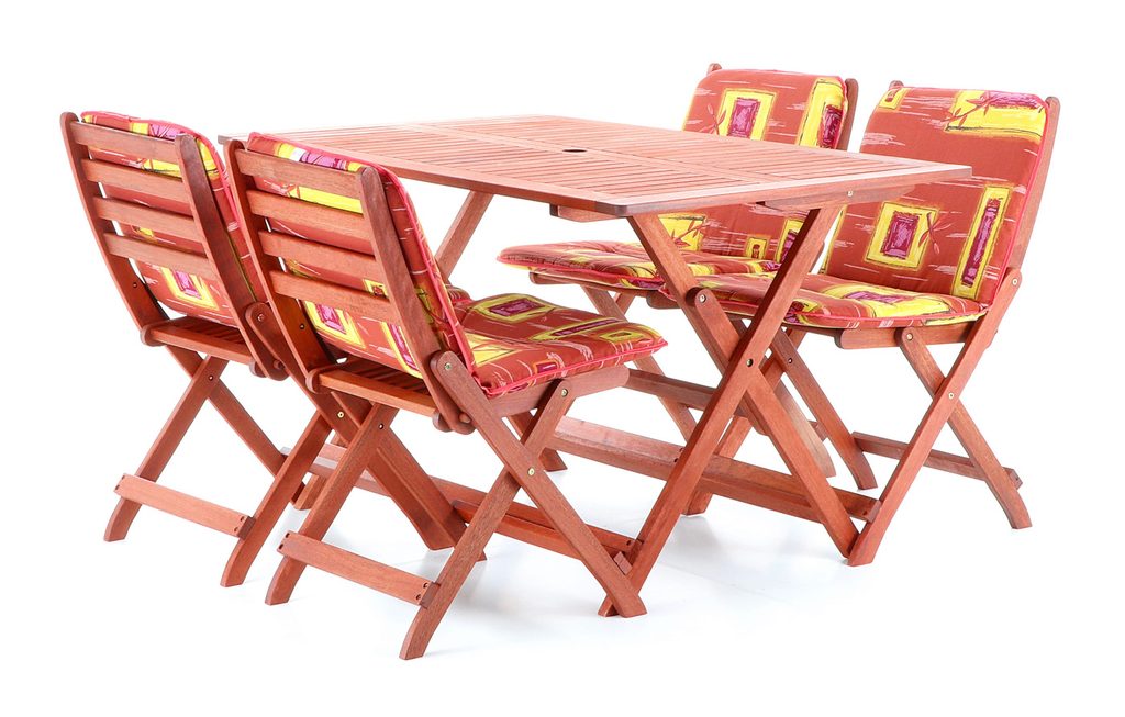 Luxusní zahradní nábytek VeGA SET 4 - je vyroben z tmavě červeného meranti. Meranti je označení pro více druhů dřevin z rodu Shorea pocházejících z jihovýchodní Asie.