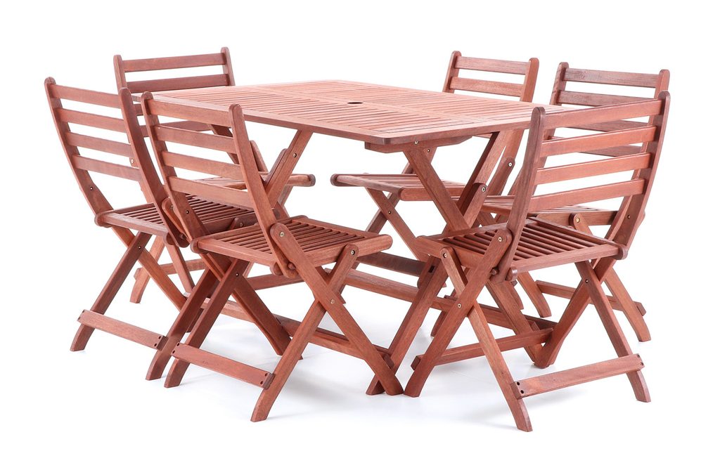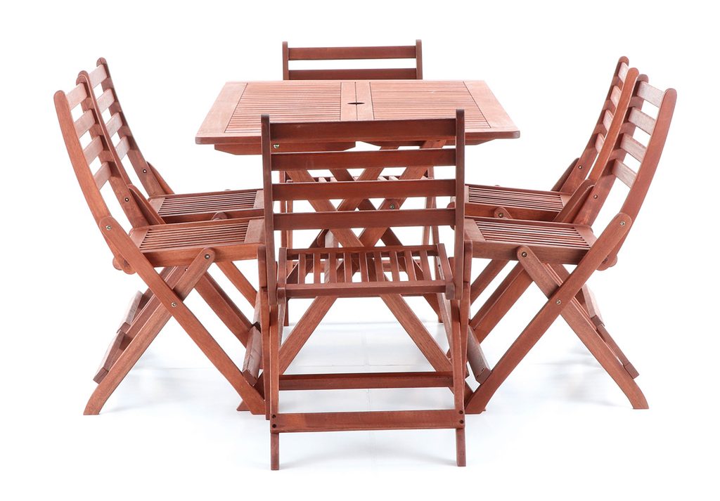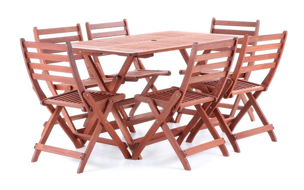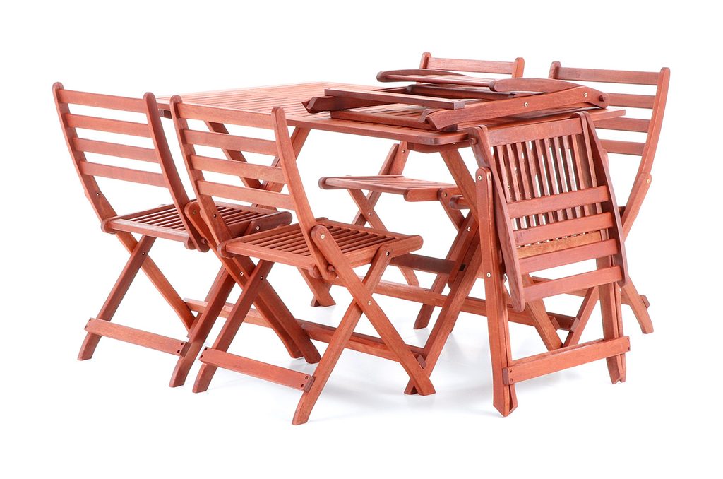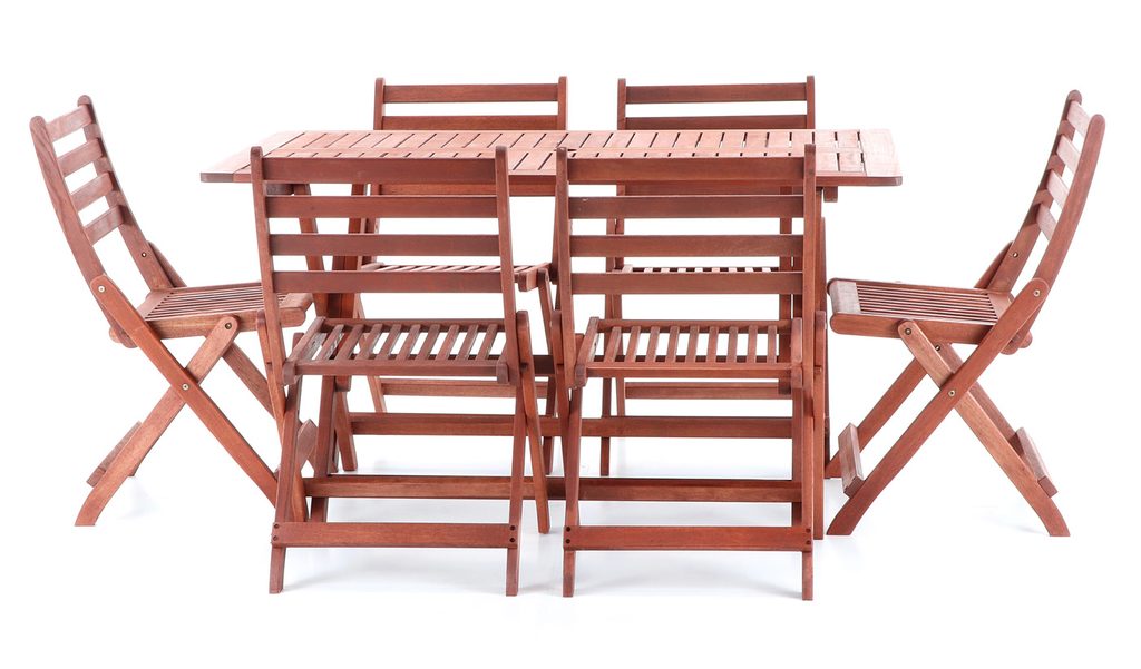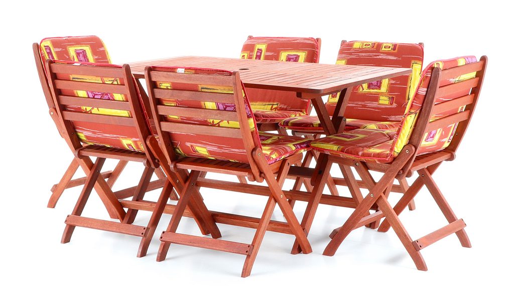 Vneste do své zahrady nádech exotiky a kvality s luxusní zahradní sestavou VeGA SET 6. Tento elegantní set tvoří šest skládacích židlí a prostorný skládací stůl, vyrobené z prvotřídního tmavě červeného meranti, jednoho z nejvyhledávanějších materiálů pro zahradní nábytek. Meranti vyniká nejen unikátní červenohnědou barvou a atraktivní kresbou, ale také výjimečnou tvrdostí, odolností a dlouhou životností.