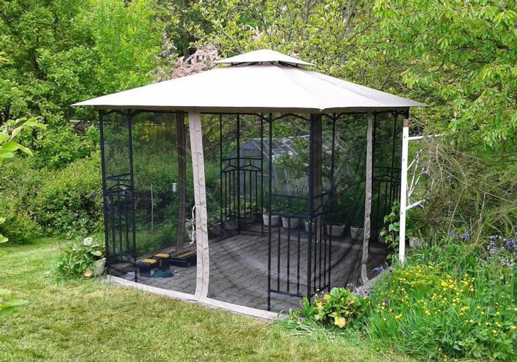 Součástí balení je praktická moskytiéra. Světlá látková stříška dobře odráží teplo a sluneční paprsky, je vyrobena z materiálu polyester. Vhodné pro každou zahradu a zahradní party.