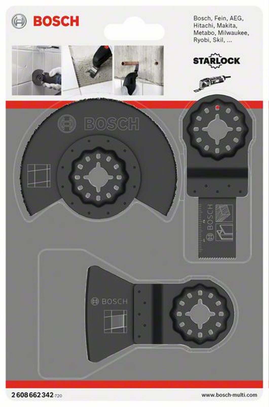 Všestranná dlaždicová sada Starlock pro renovace a rekonstrukce (např. frézování spár obkladaček a podlahové dlažby, odstraňování malty nebo lepidla na obkladačky, frézování menších výřezů do měkkých obkladaček).
