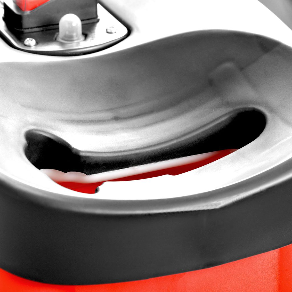 HECHT 626 obsahuje vak na drcený materiál o objemu 50 l, díky hmotnosti 23,5 kg a šikovné dvojici kol s ním můžete snadno manipulovat.
