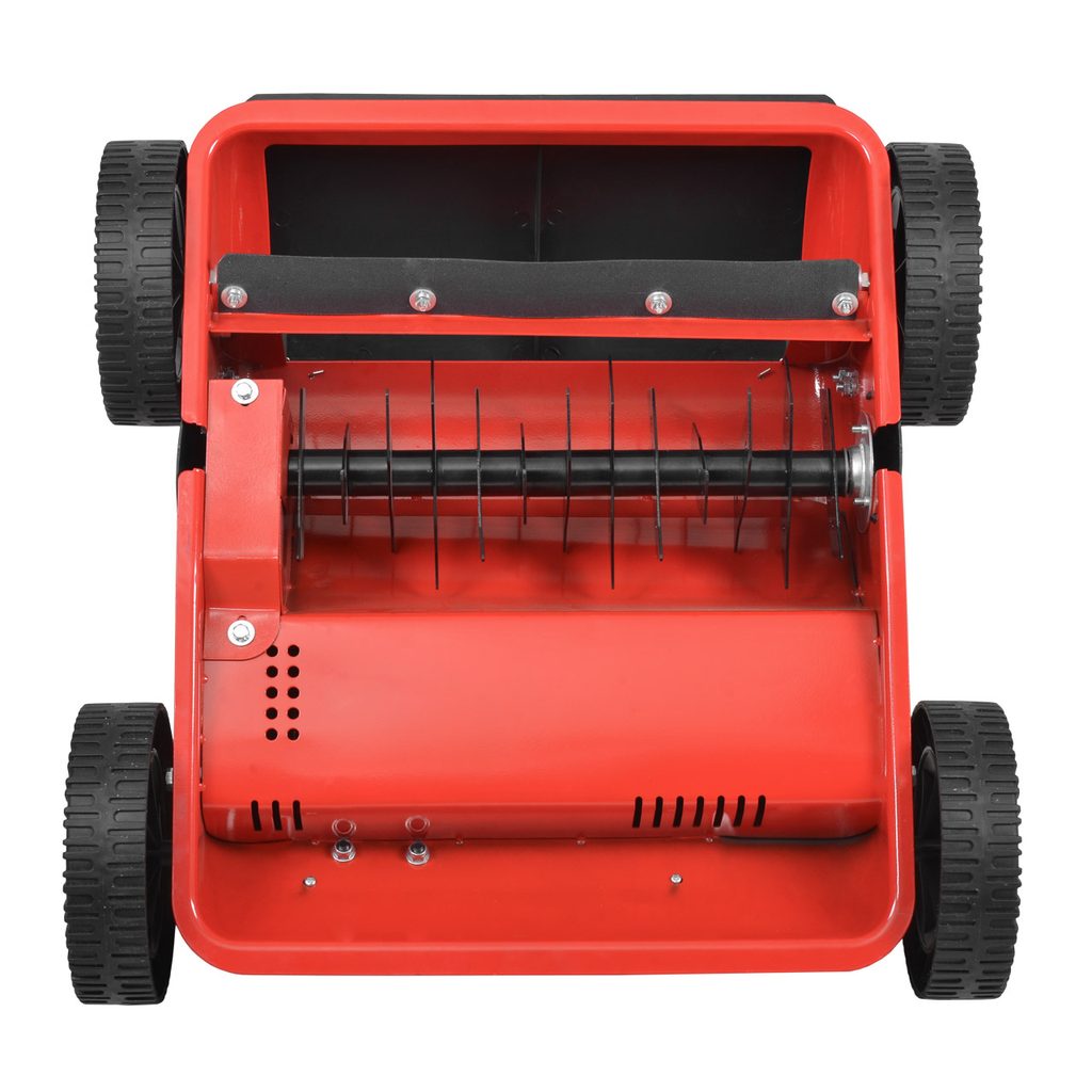 Nový elektrický vertikutátor, byl rozbalen, ale nebyl použit, kompletní koš ušpiněn, má oděrky povrchu, vč. návodu, originální balení poškozeno, sestavena kola. Funkční.