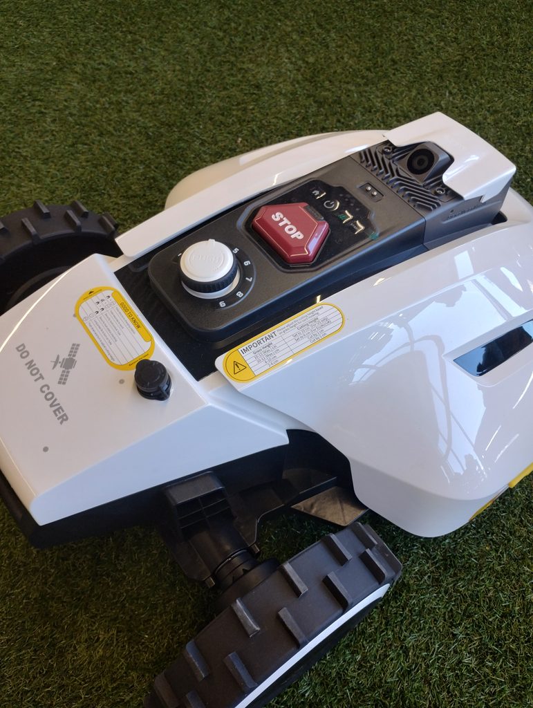 Robotická sekačka byla pouze rozbalena, je nová, chybí sběrací koš, toto nemá vliv na funkčnost, originální balení, možné drobné oděrky povrchu.