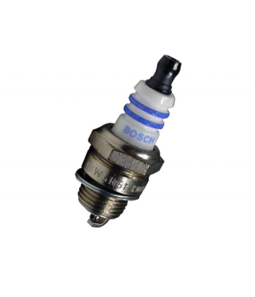 Speciální jednoelektrodová zapalovací svíčka Bosch WSR 6 F, vhodná pro 2-taktní motory řetězových pil a křovinořezů STIHL.