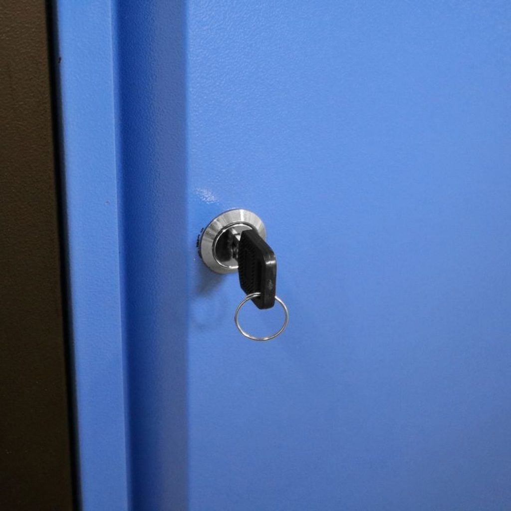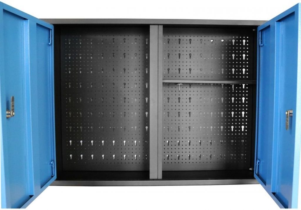 Nástěnná skříňka na nářadí, určená k využití v domácích nebo údržbářských dílnách, montážních provozech apod.