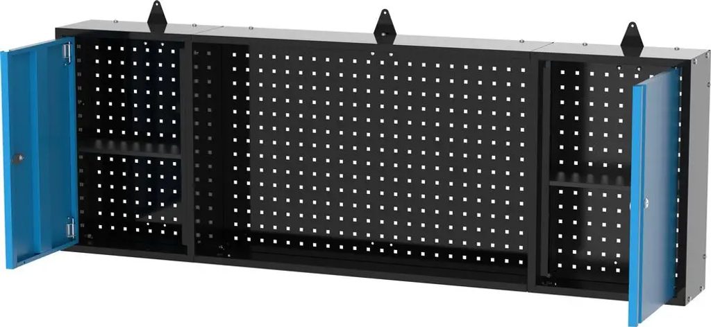 Tato dvoudveřová nástěnná skříňka s praktickým integrovaným perforovaným panelem je dokonalým doplňkem řady Güde Eco Line, která nyní umožňuje optimálně využít prostor na stěně nad našimi dvěma pracovními stoly XL.
