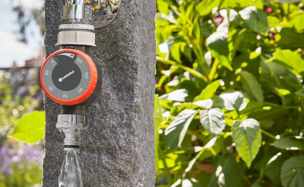 GARDENA zavlažovací hodiny automaticky zapínají a vypínají zavlažování ve vaší zahradě. Zařízení se jednoduše připojí na vodovodní kohoutek a ovládá se pomocí velkého otočného prvku.
