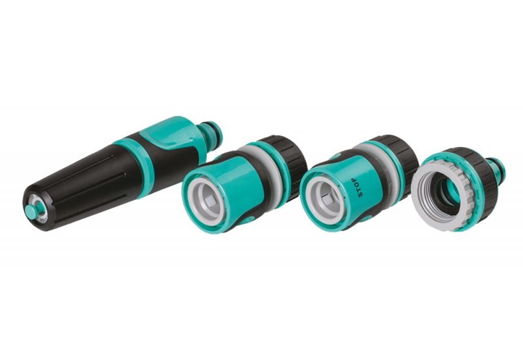 Sada zavlažovacího postřikovače a koncovek FESTA AQUATIC 45385 obsahuje stavitelný rozstřikovač na rychlospojku, se kterým si snadno zvolíte požadovaný tvar vodního proudu – od jemného rosení až po silnější proud na větší plochy. Součástí balení je také stop-rychlospojka, běžná rychlospojka pro hadice 1/2" a adaptér na kohout 1/2–3/4", což zajišťuje maximální kompatibilitu a jednoduché propojení s dalšími produkty ROSA. Vše navíc snadno a rychle napojíte bez zbytečného zdržování.
