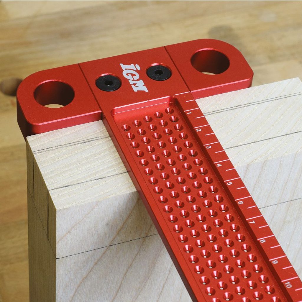 Přesný duralový značicí příložník IGM 160 mm je ideální pomůcka pro truhláře, řemeslníky i domácí kutily. Umožňuje rychlé a naprosto přesné rýsování pravých úhlů i rovnoběžných čar s hranou dílce – bez zdlouhavého přeměřování. Možnost rýsování rovnoběžných čar je ve vzdálenosti cca 5–160 mm.